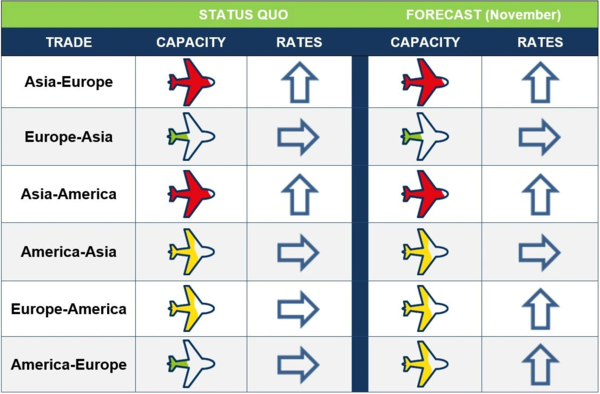 Legend: traffic lights showing current status, arrow indicates possible development of transport rates.