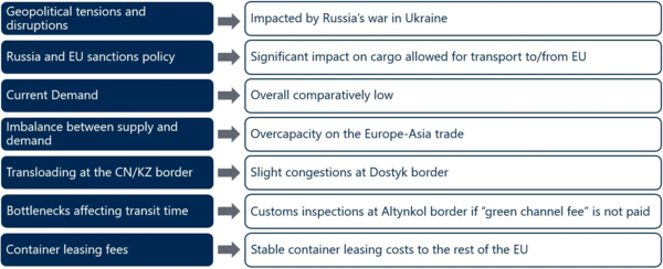 However, geopolitical issues still present challenges for this mode of transport. The Russian sanctions policy is still in place, requiring a very detailed check on HS codes of goods. (Click for more)